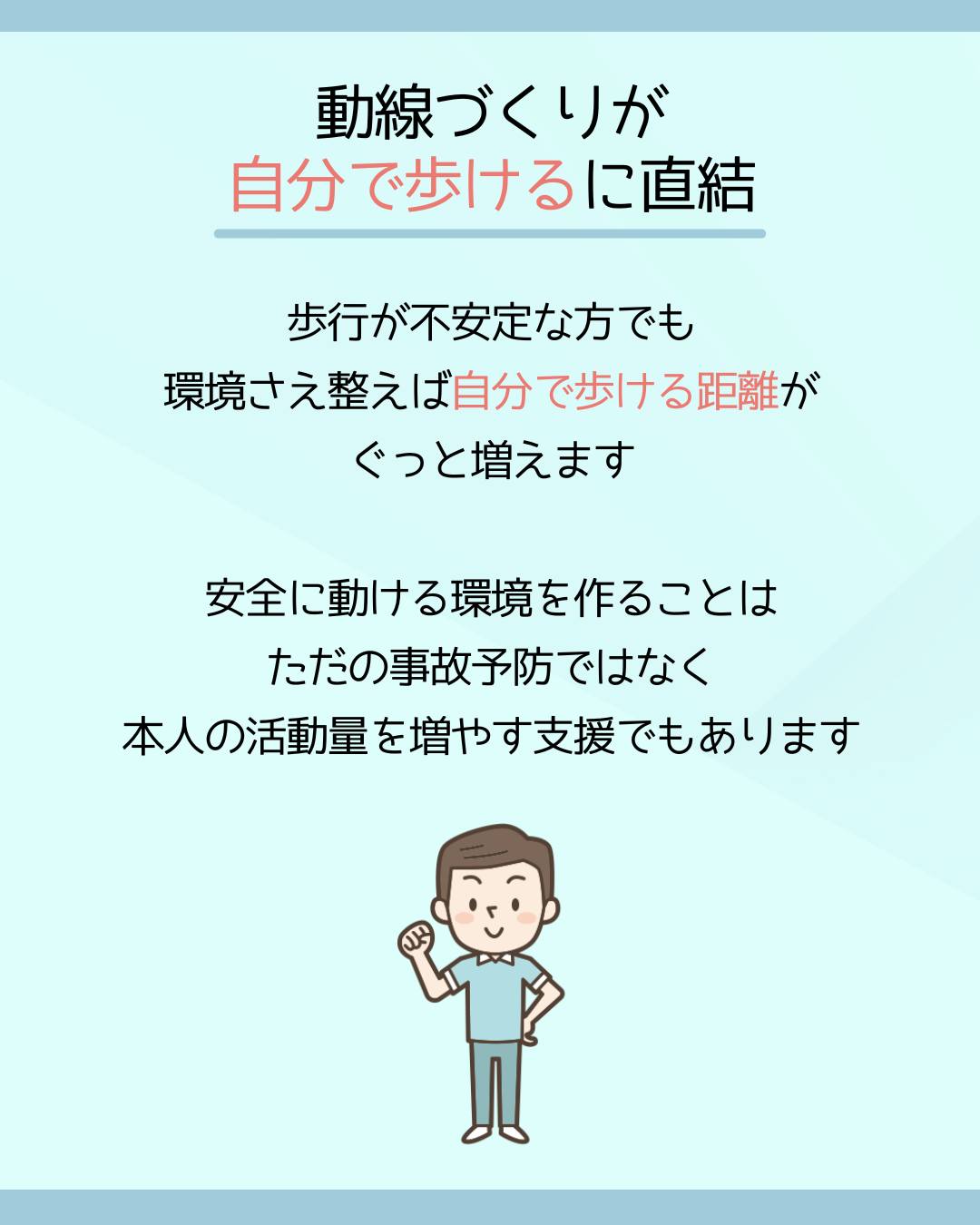 安全に動ける環境を作ることは、ただの事故予防ではなく本人の活動量を増やす支援でもあります。