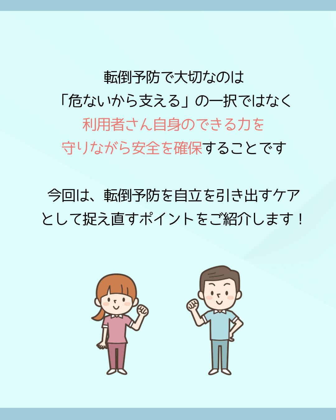 今回は、転倒予防を自立を引き出すケアとして捉え直すポイントをご紹介します!