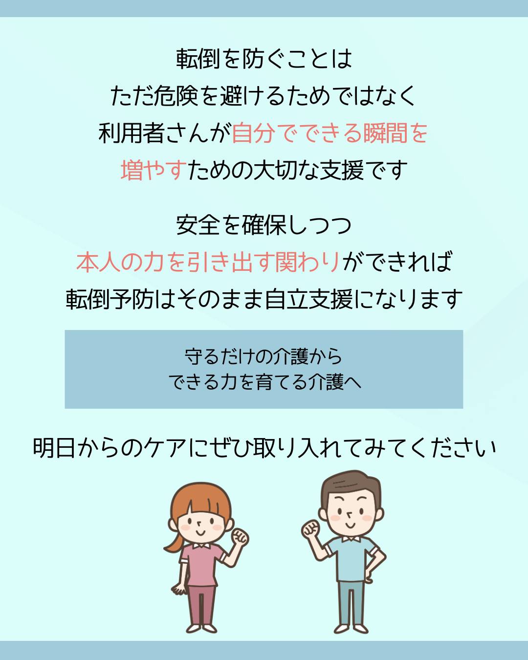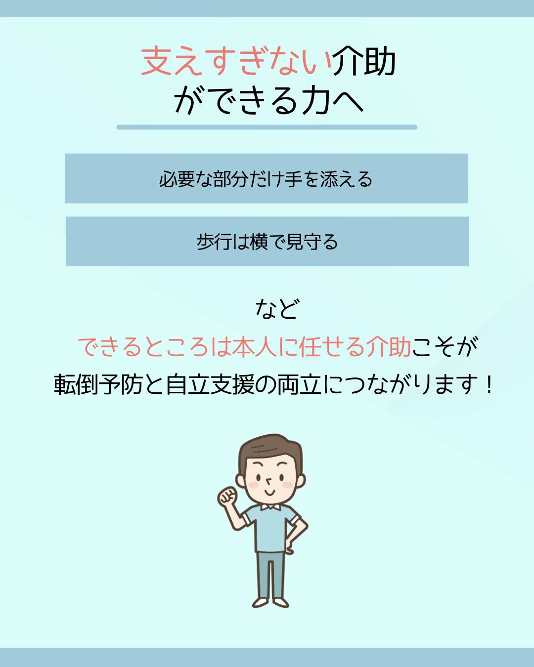 できるところは本人に任せる介助こそが、転倒予防と自立支援の両立につながります!