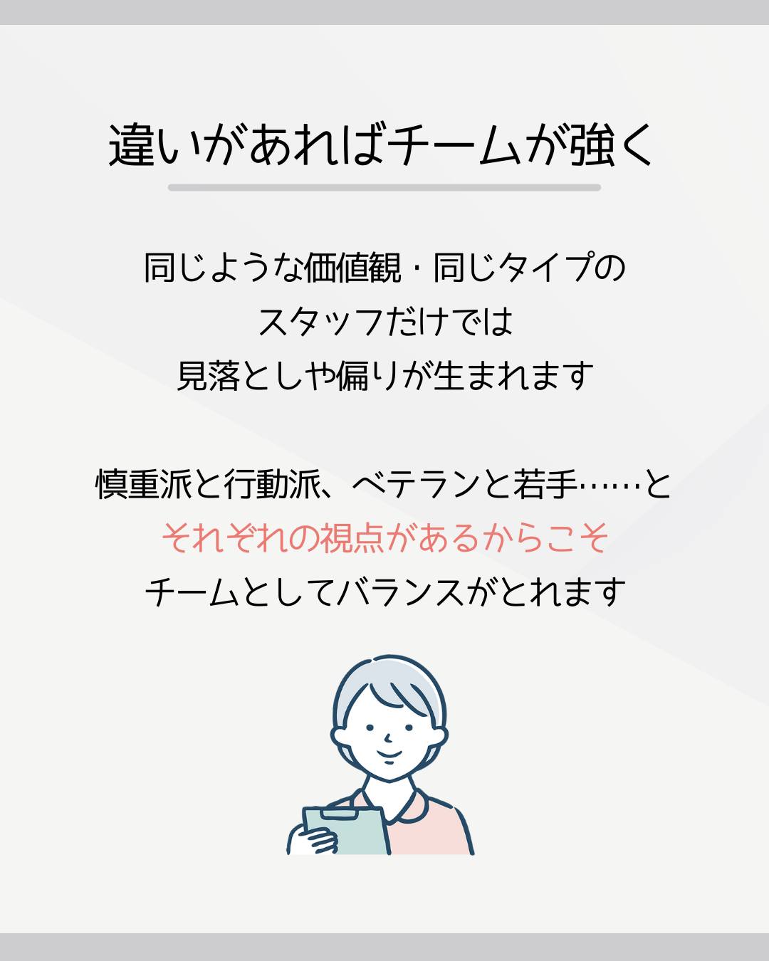 同じような価値観・同じタイプのスタッフだけでは、見落としや偏りが生まれます