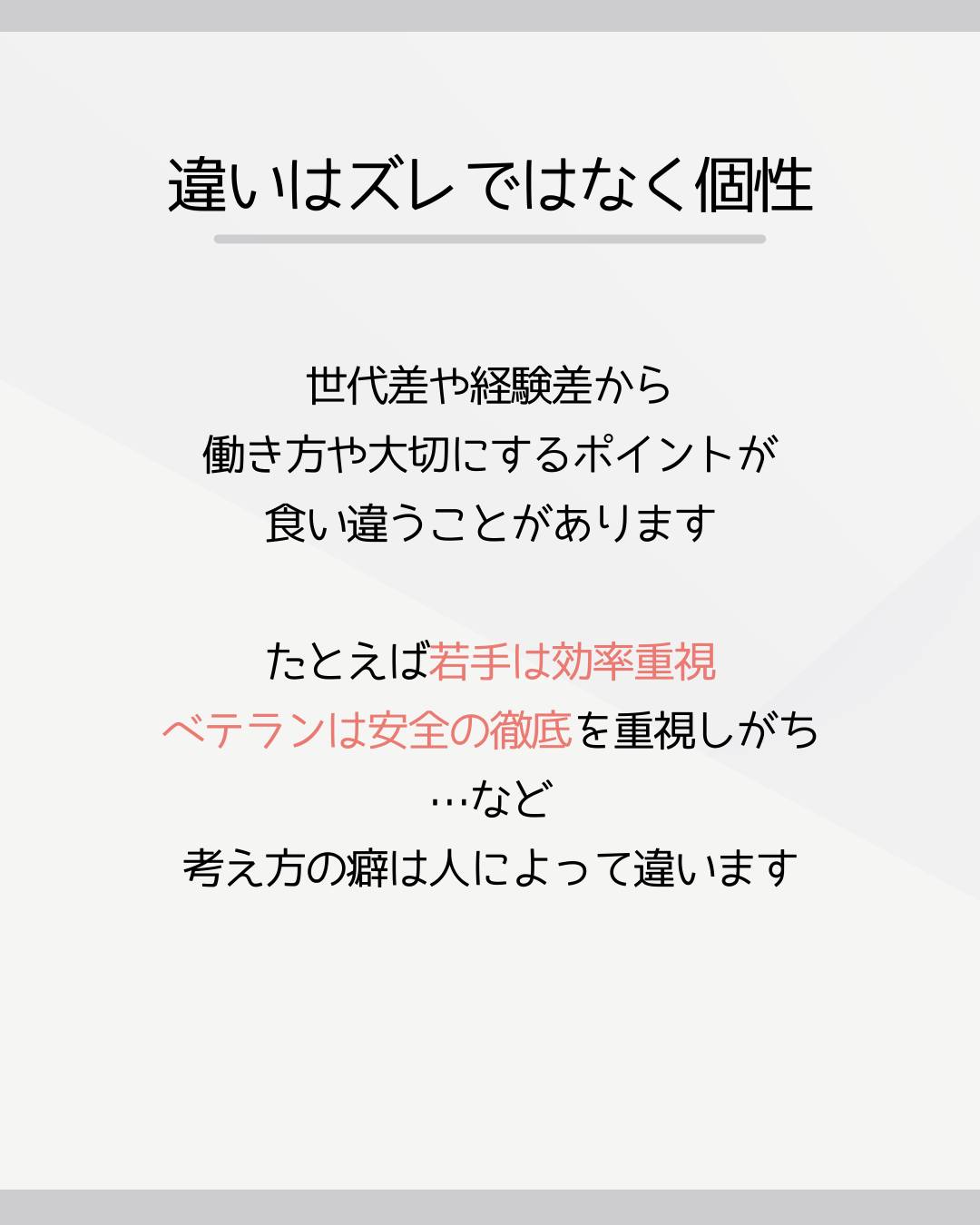 たとえば若手は「効率重視」、ベテランは「安全の徹底」を重視しがち…など、考え方の癖は人によって違います。