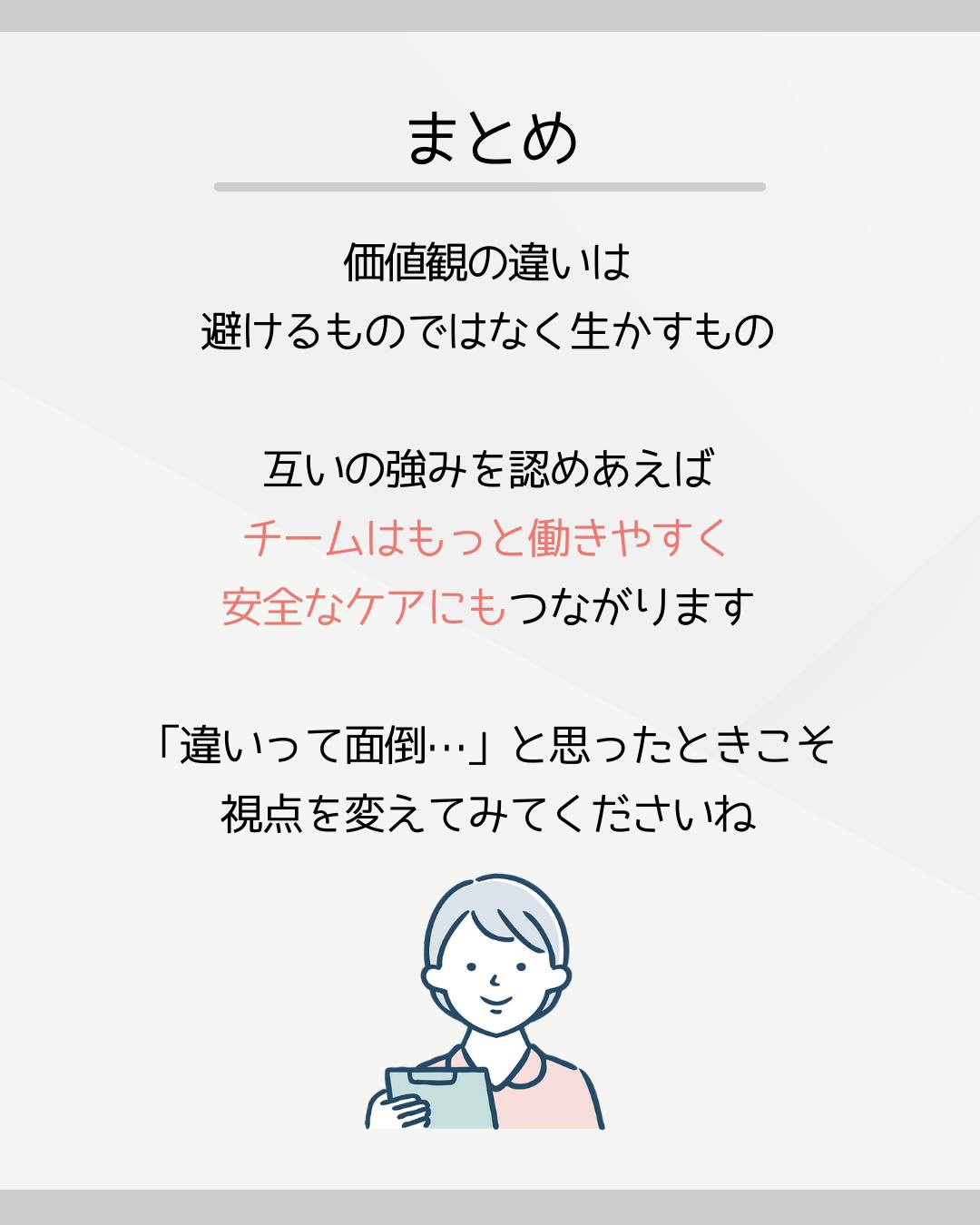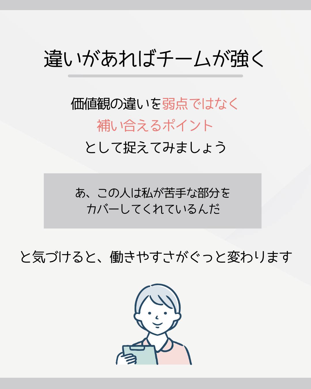 互いの強みを認めあえば、チームはもっと働きやすく、安全なケアにもつながります。