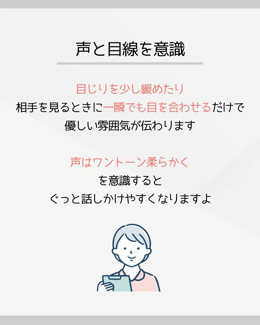 声のトーンを少し落ち着かせるだけでも、話を聞く姿勢が伝わります。