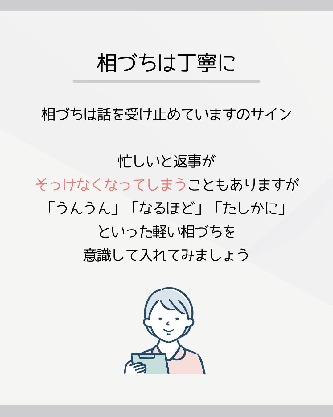 「うんうん」「なるほど」「たしかに」といった軽い相づちを意識して入れてみましょう。