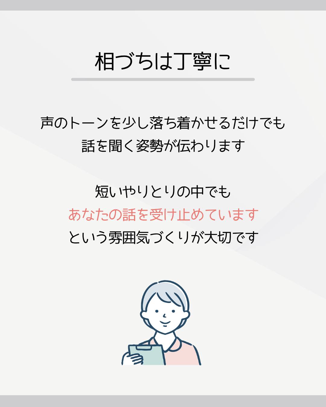 短いやりとりの中でも、あなたの話を受け止めていますという雰囲気づくりが大切です。