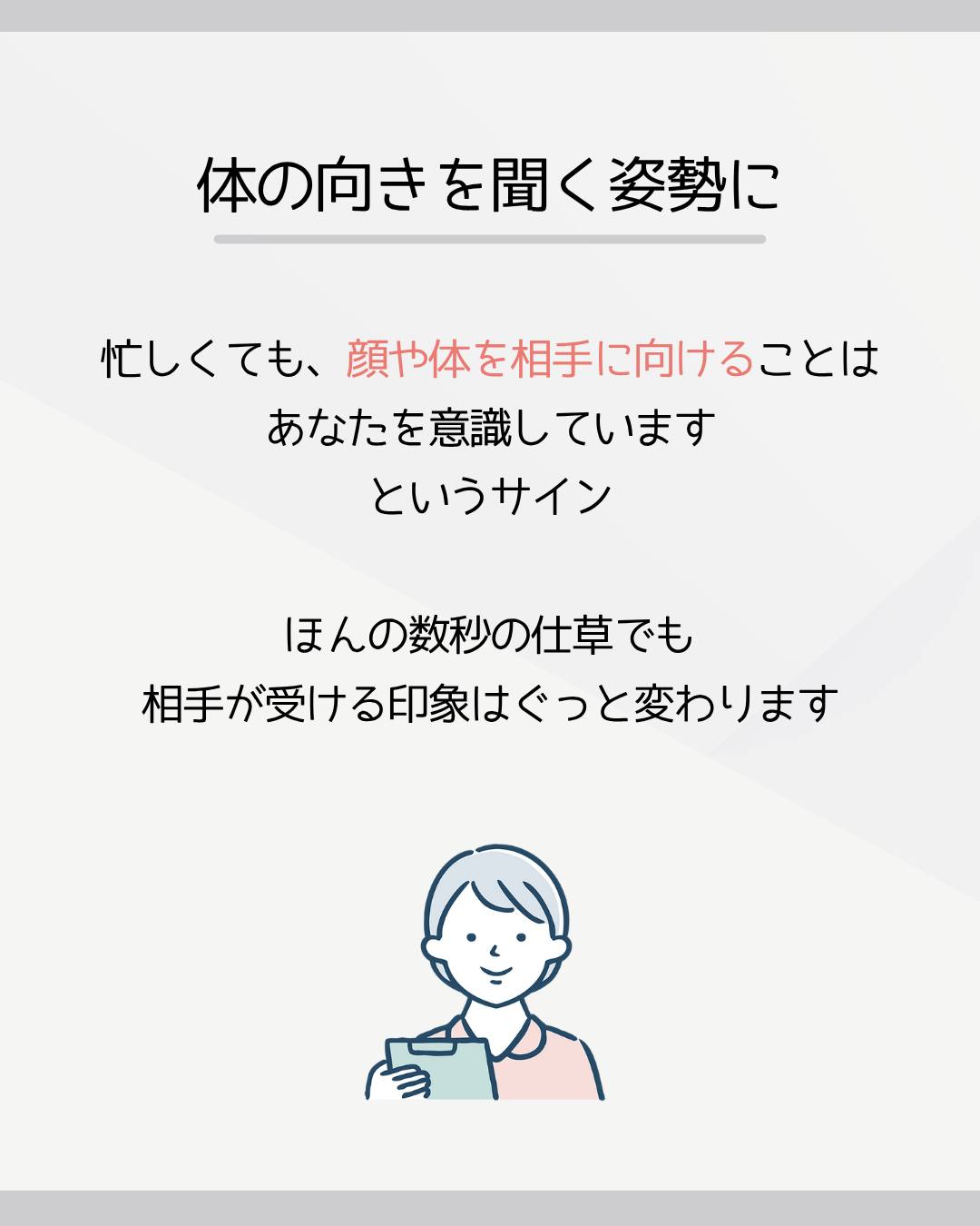 ほんの少しだけ体を相手の方に向けるだけで「ちゃんと聞いてくれている」と伝わります。