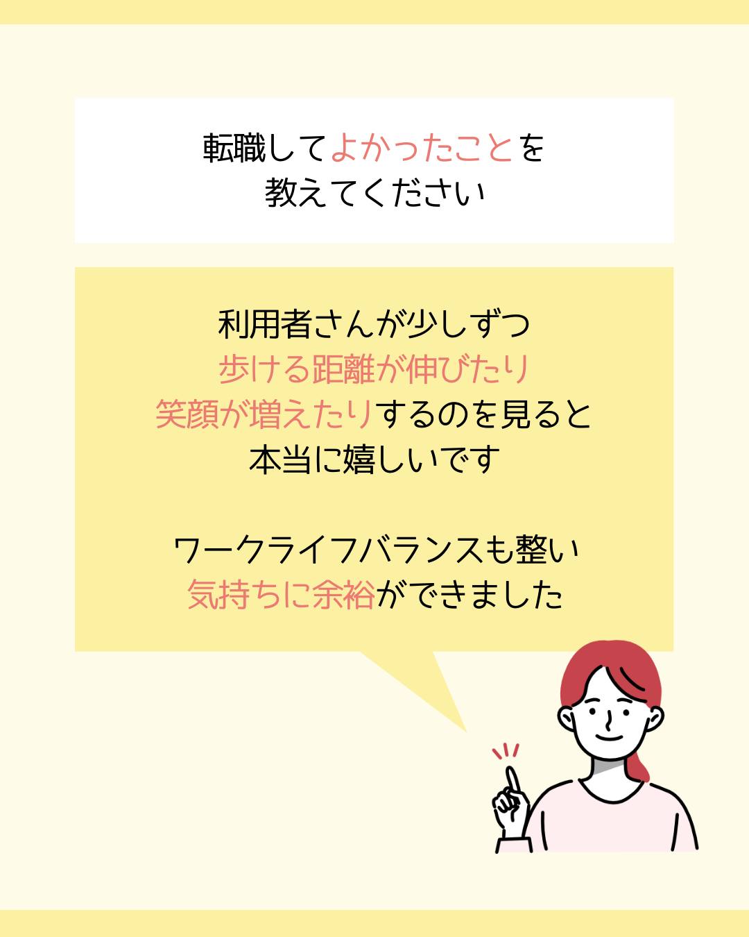 ワークライフバランスも整い、気持ちに余裕ができました。