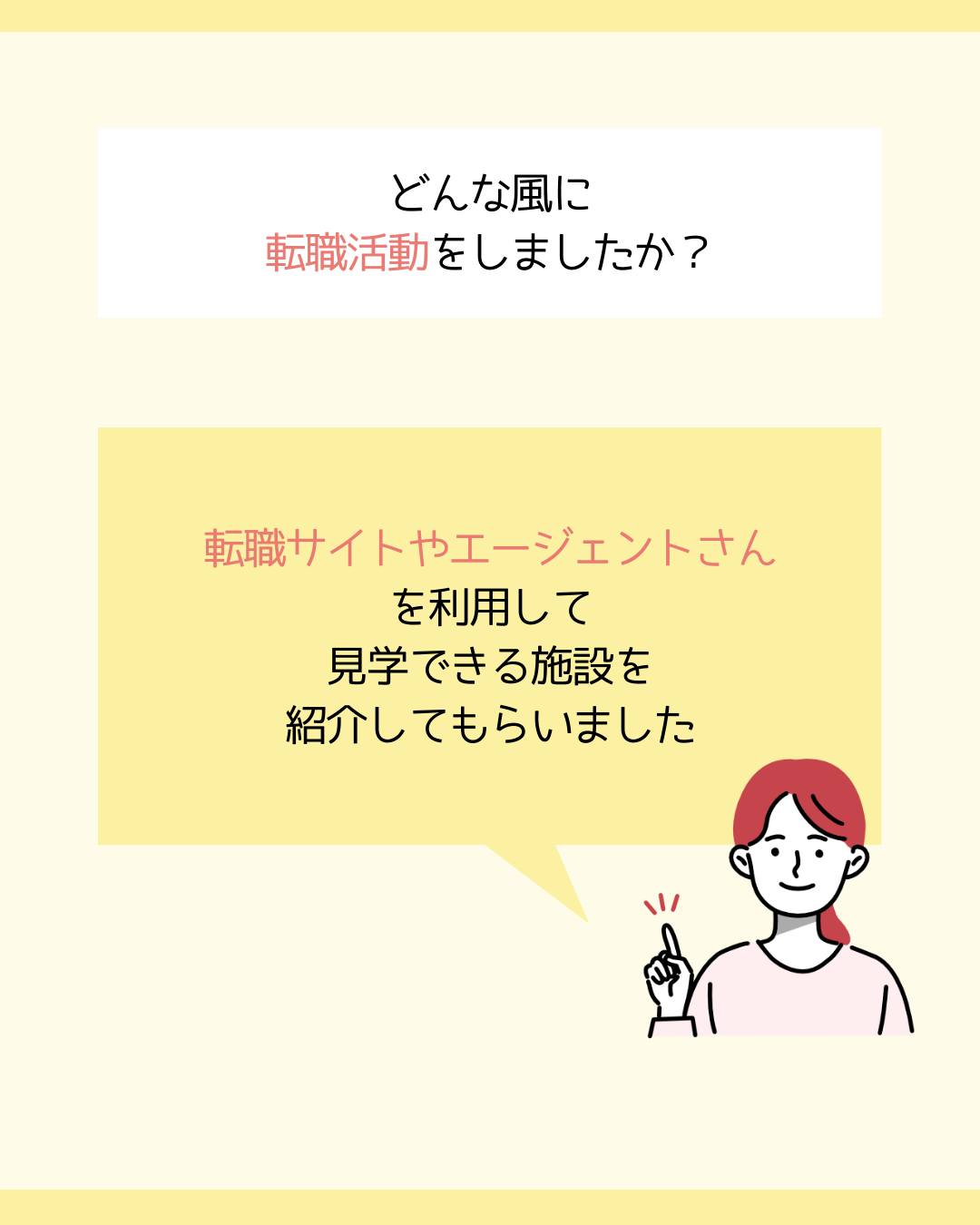 転職サイトやエージェントさんを利用して、見学できる施設を紹介してもらいました。