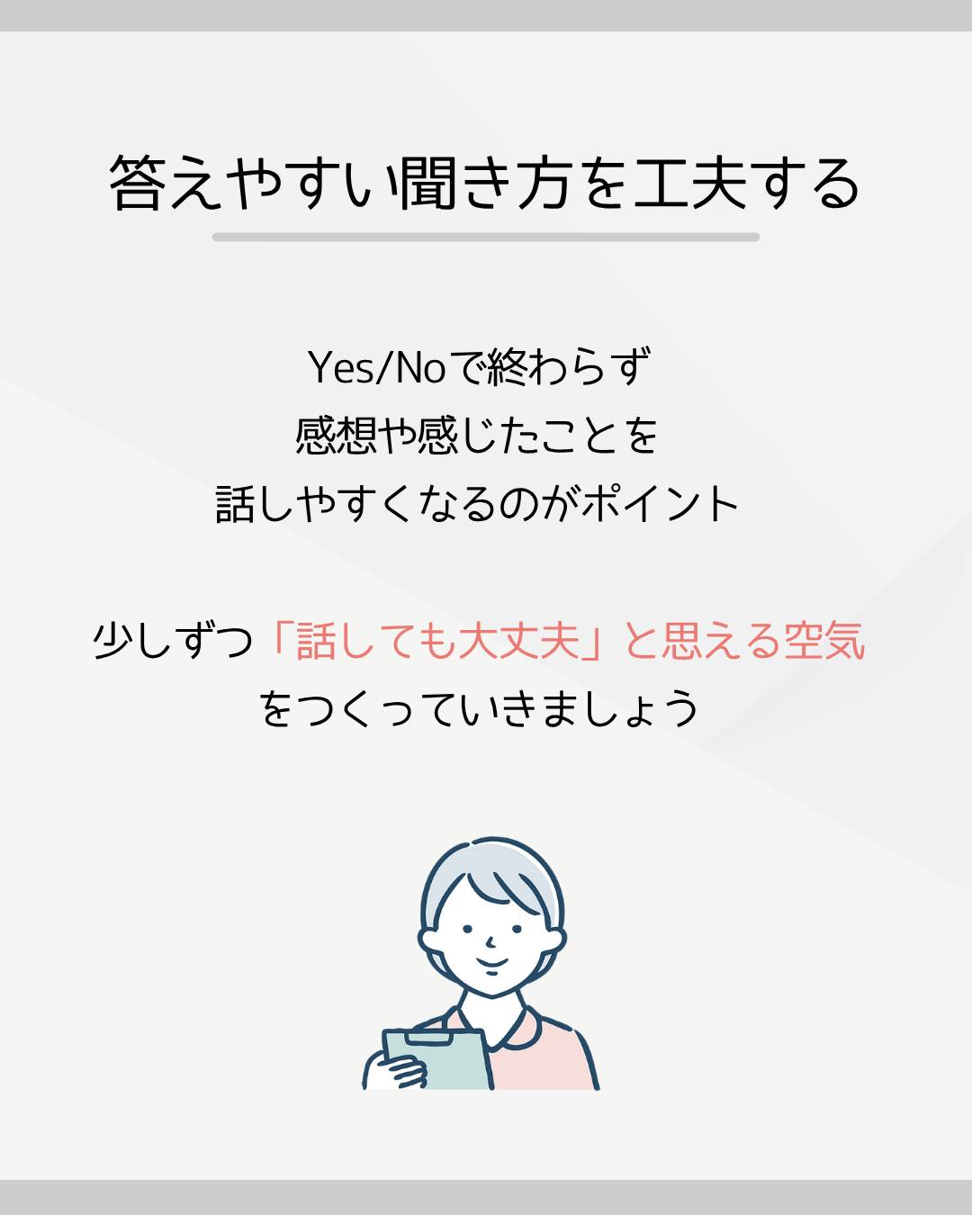 少しずつ「話しても大丈夫」と思える空気をつくっていきましょう。