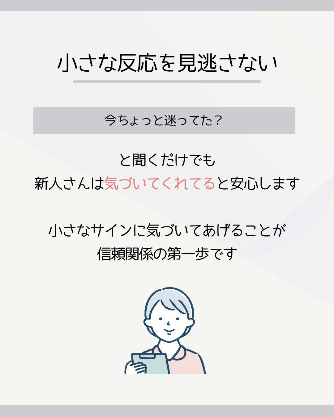 「今ちょっと迷ってた?」と聞くだけでも、新人さんは“気づいてくれてる”と安心します。