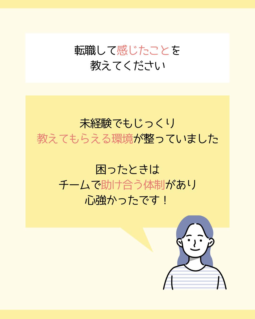 未経験でもじっくり教えてもらえる環境が整っていました。