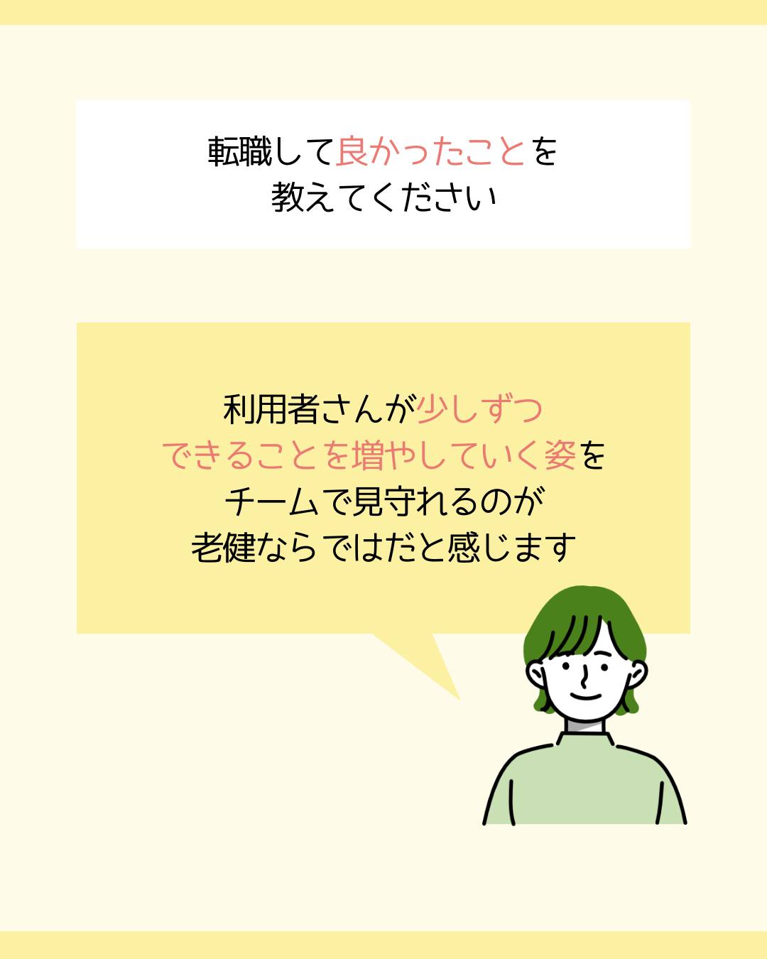 忙しさに追われる看護から、「経過を大切にする看護」に変われてよかったです。