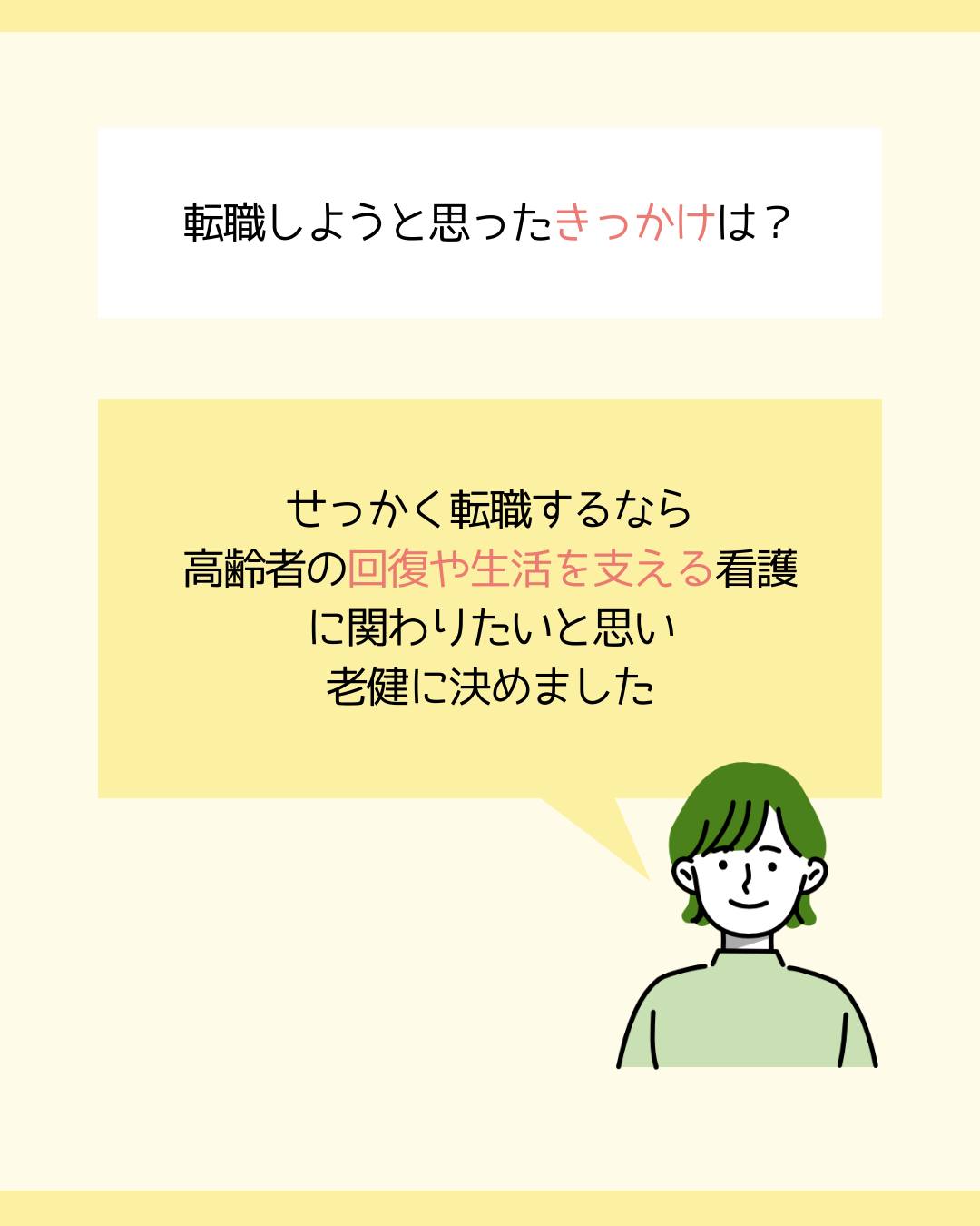 高齢者の「回復や生活」を支える看護に関わりたいと思い、老健に決めました。