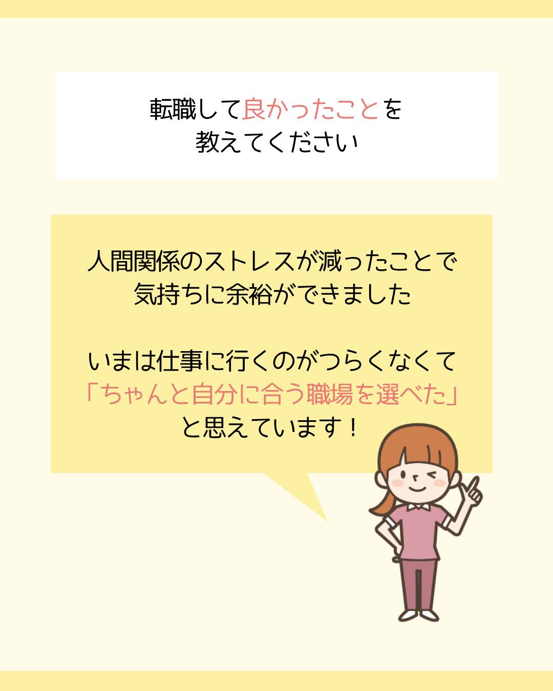 いまは仕事に行くのがつらくなくて、「ちゃんと自分に合う職場を選べた」と思えています!