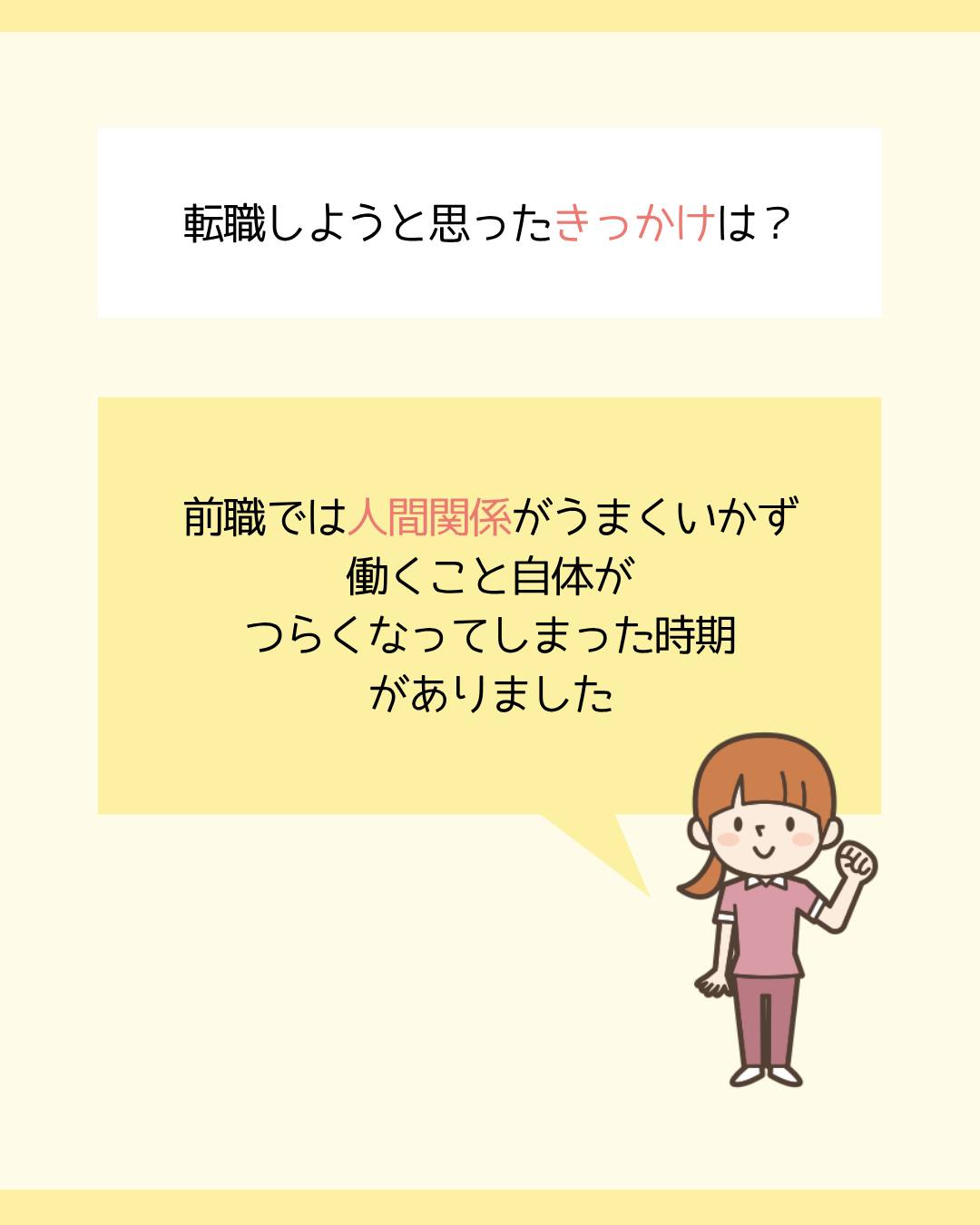 前職では人間関係がうまくいかず、働くこと自体がつらくなってしまった時期がありました