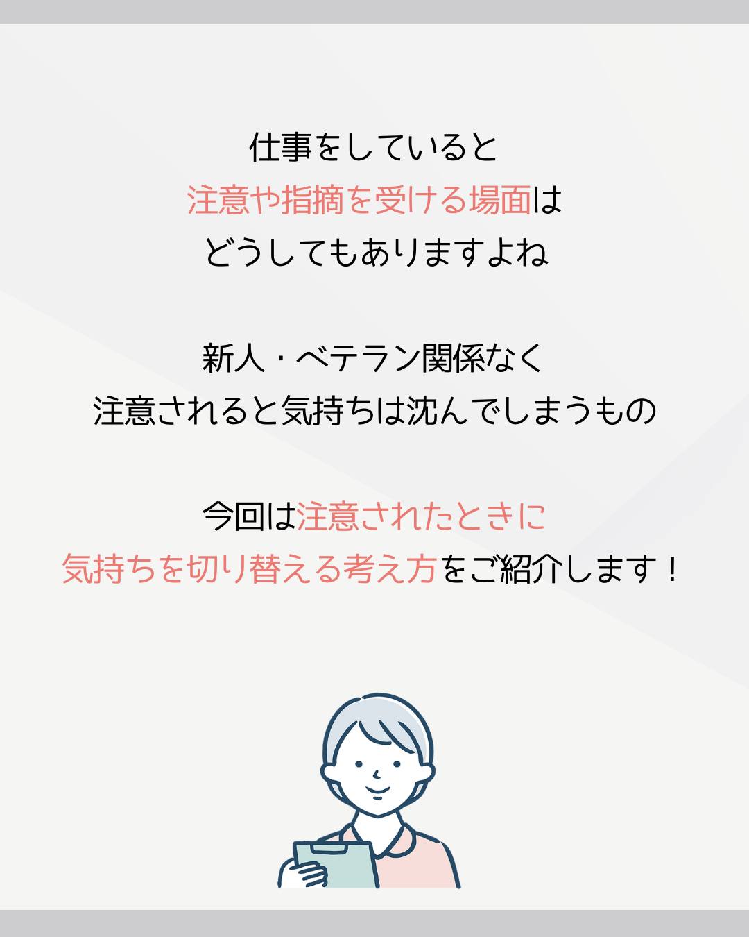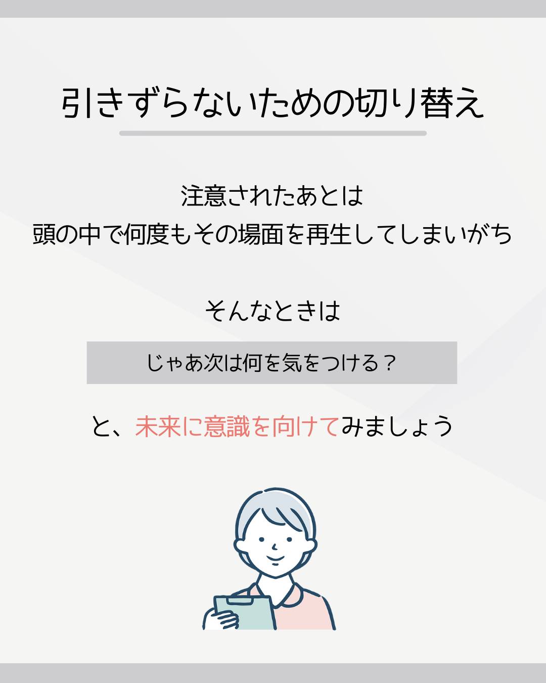 今回は注意されたときに気持ちを切り替える考え方をご紹介します!