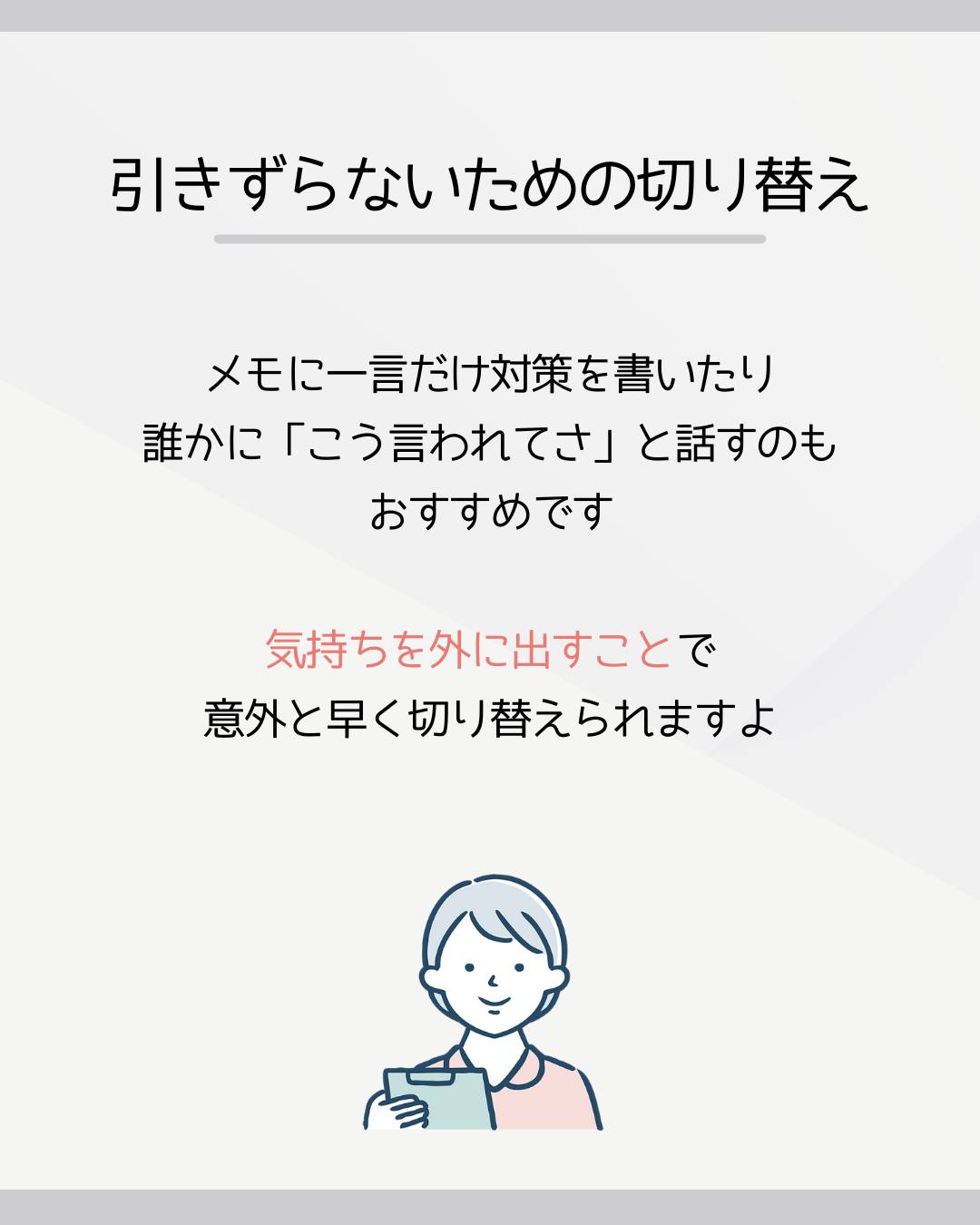 メモに一言だけ対策を書いたり、誰かに「こう言われてさ」と話すのもおすすめです。