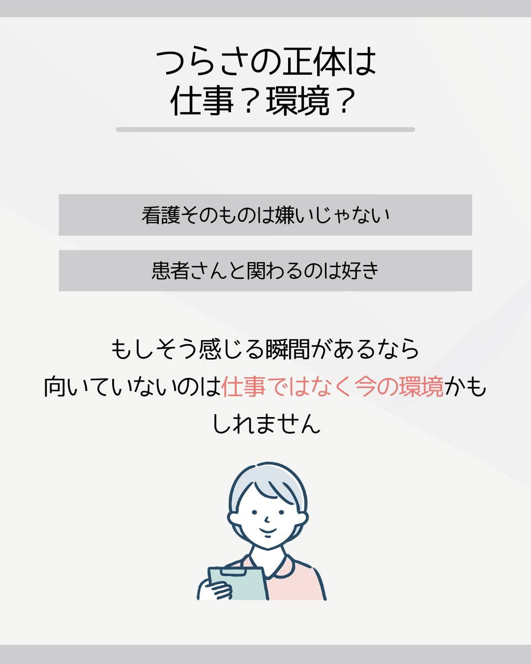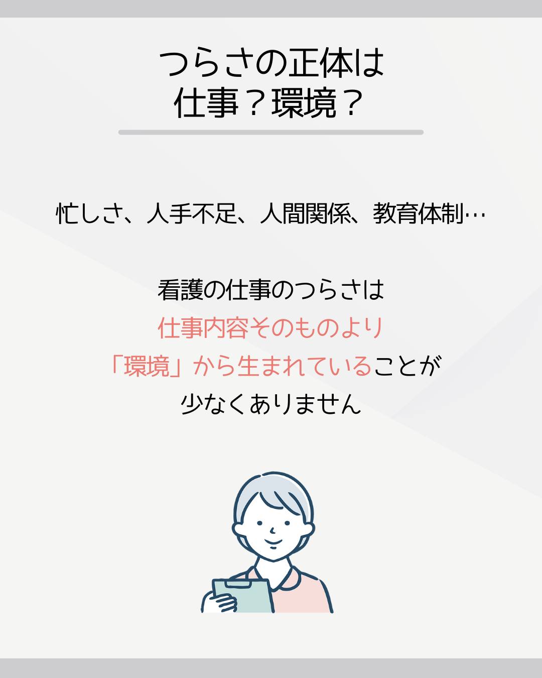 看護の仕事のつらさは、仕事内容そのものより「環境」から生まれていることが少なくありません。