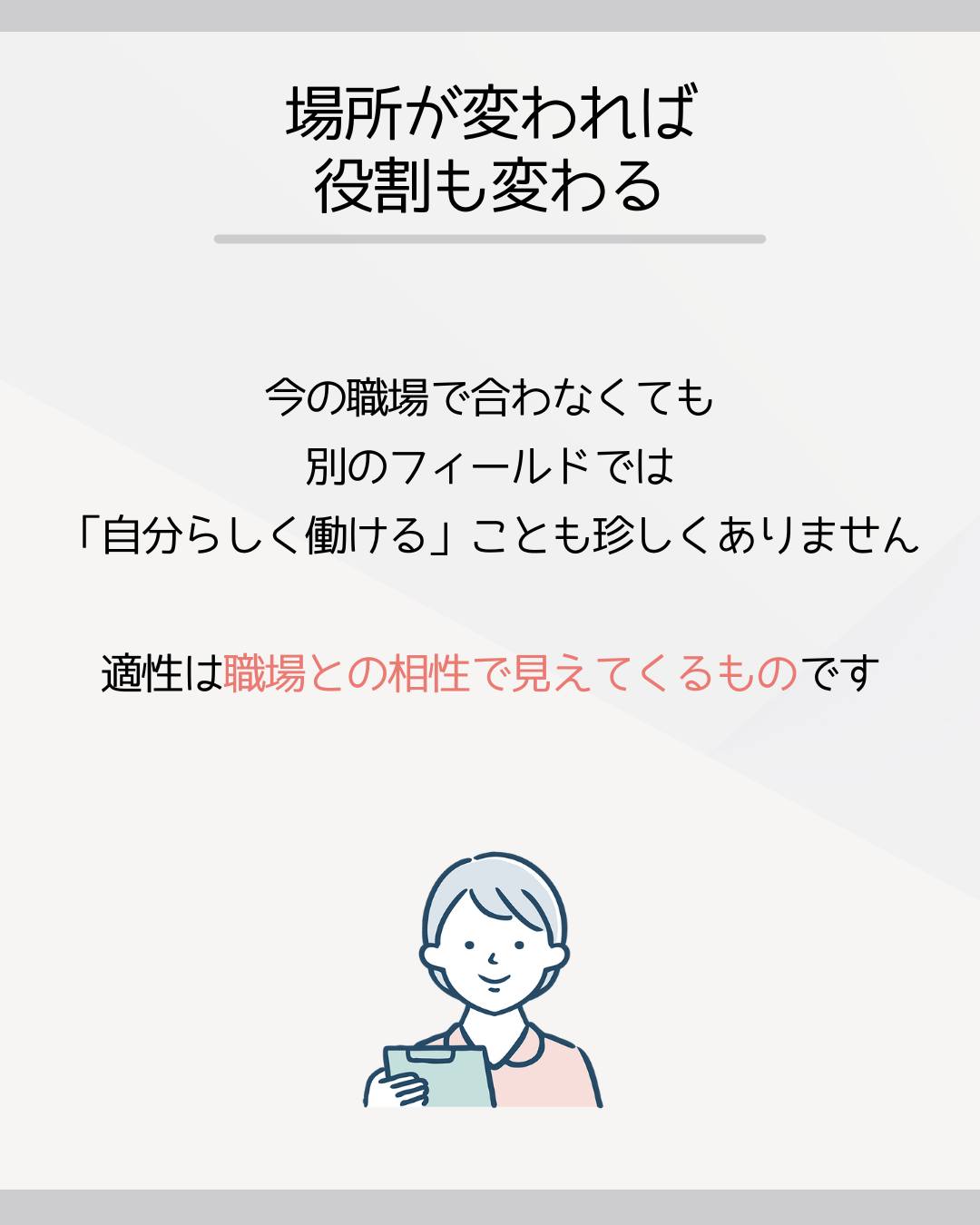「向いてないかも…」と思ったときこそ、場所を変える視点を持ってみてくださいね。
