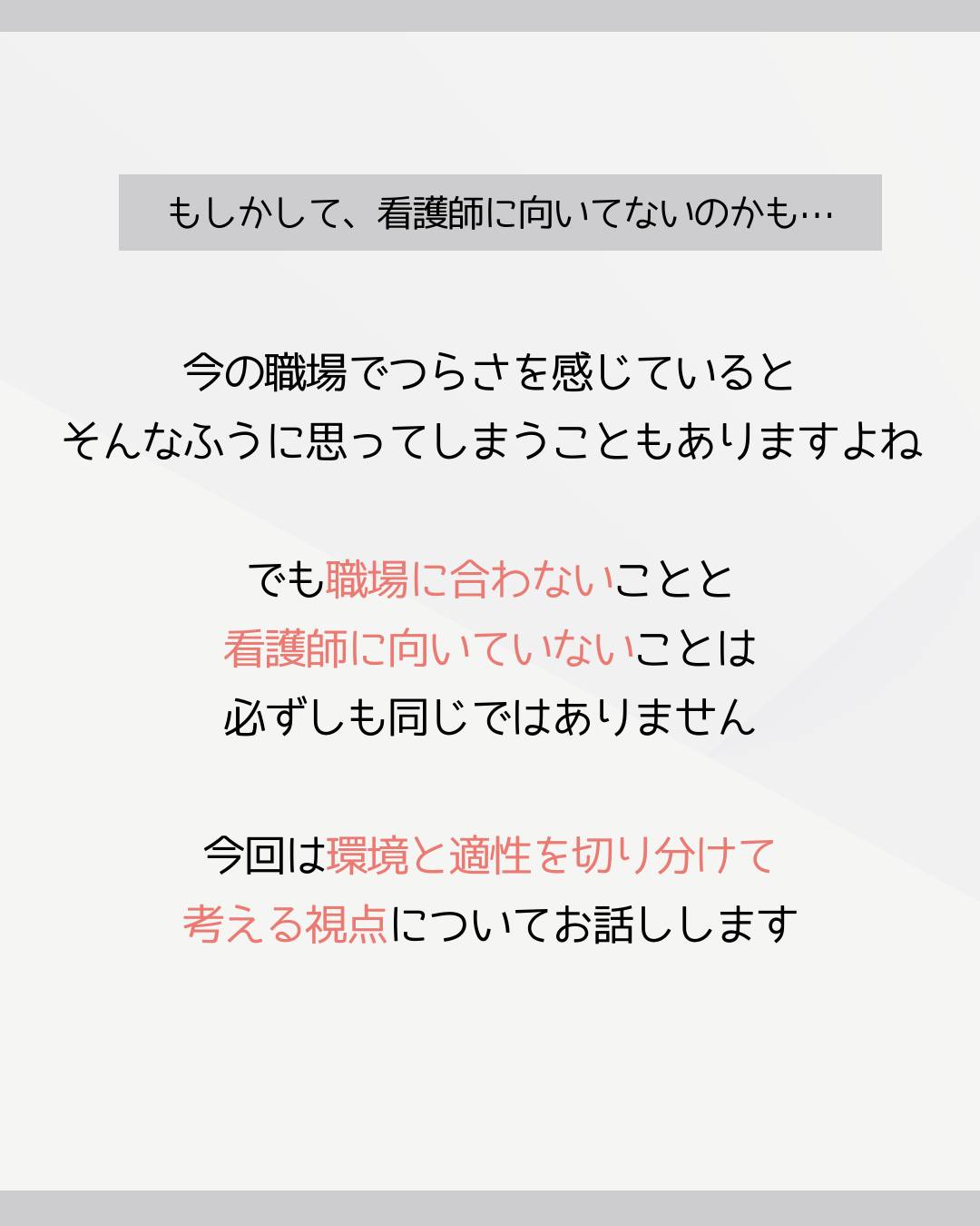 でも職場に合わないことと、看護師に向いていないことは、必ずしも同じではありません。