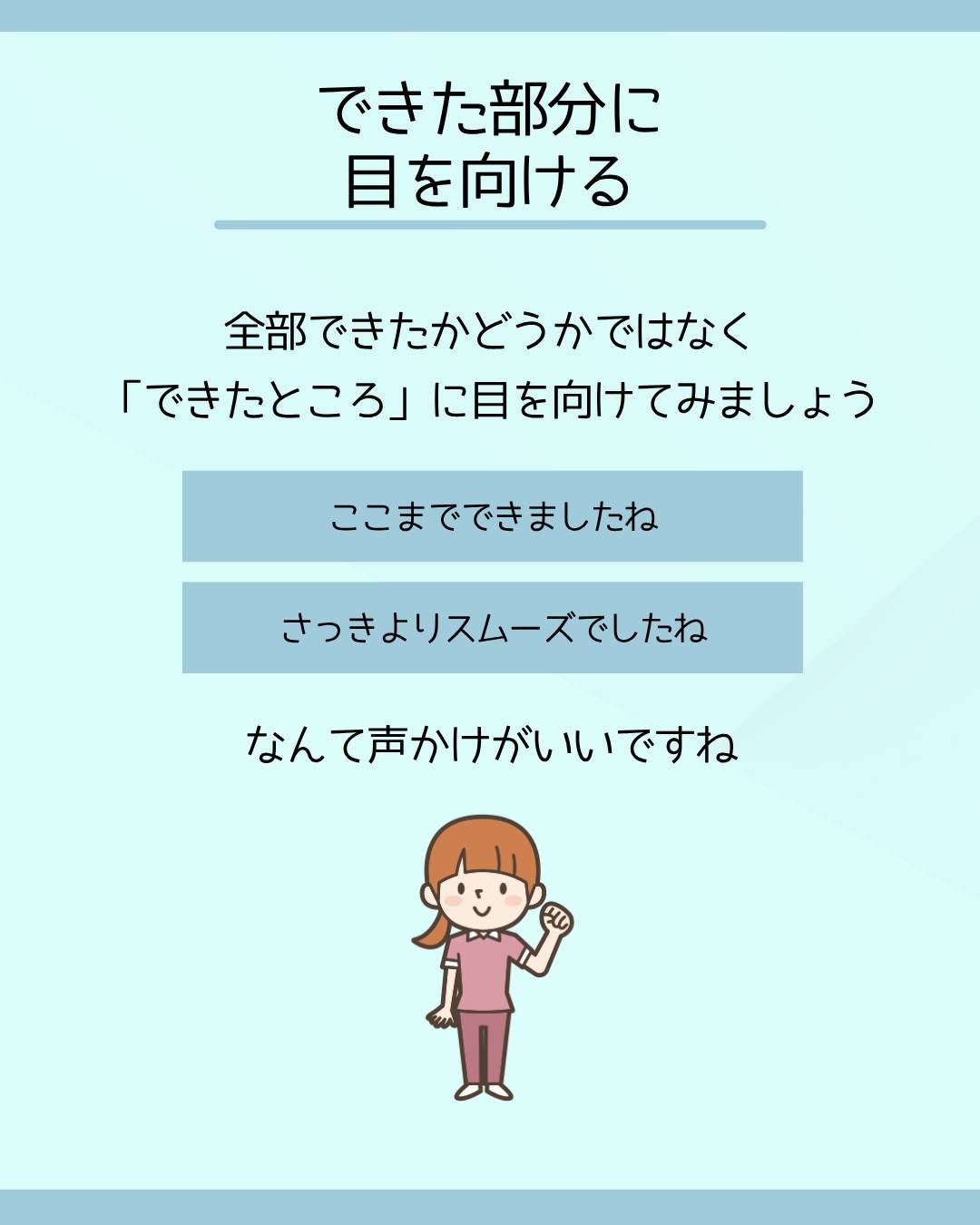 全部できたかどうかではなく、「できたところ」に目を向けてみましょう。