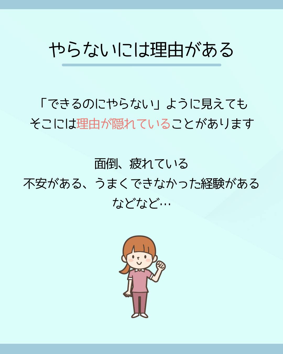 「できるのにやらない」ように見えても、そこには理由が隠れていることがあります。