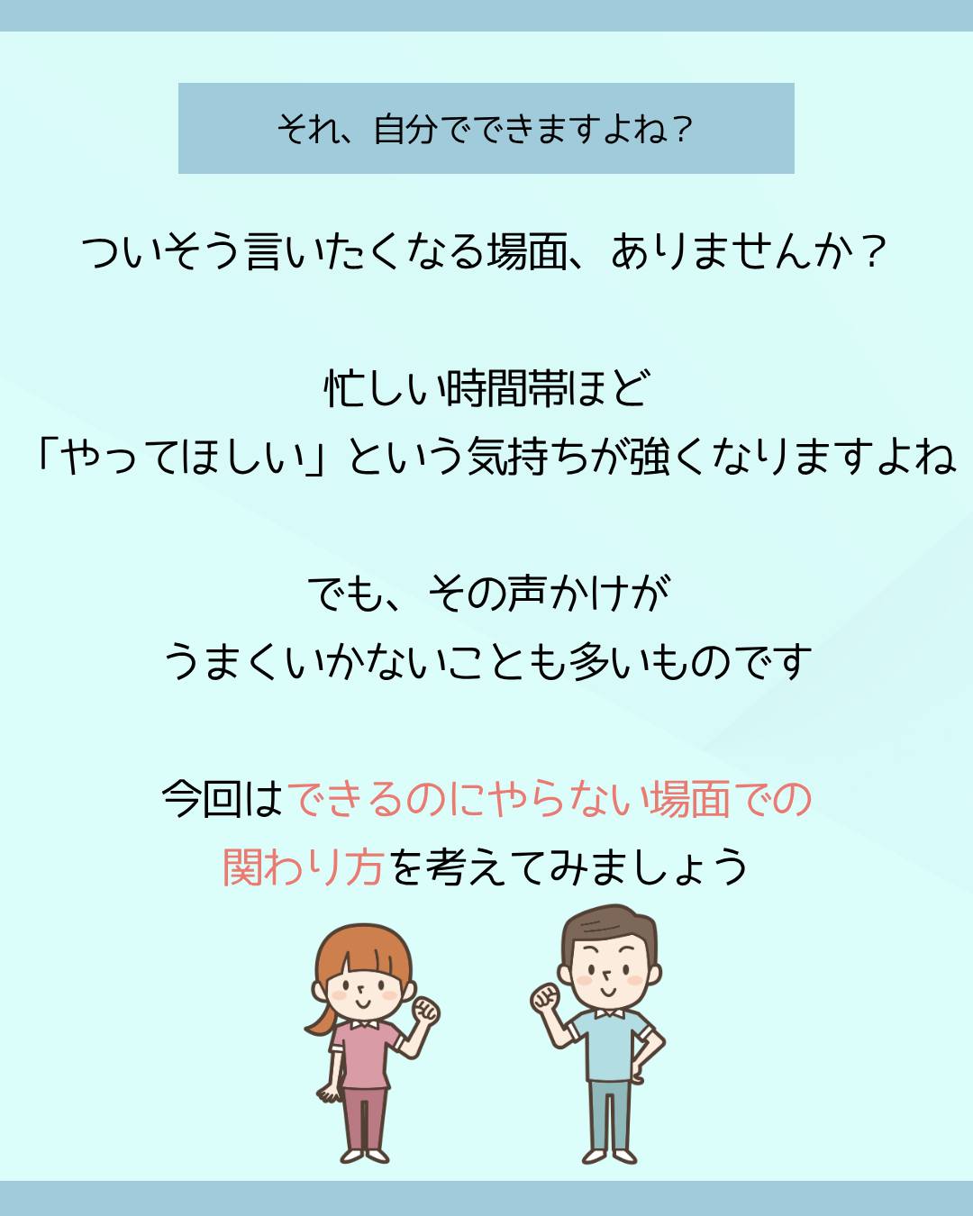 「自分でやってください」ではなく、「一緒に少しやってみますか?」と声をかけてみましょう。