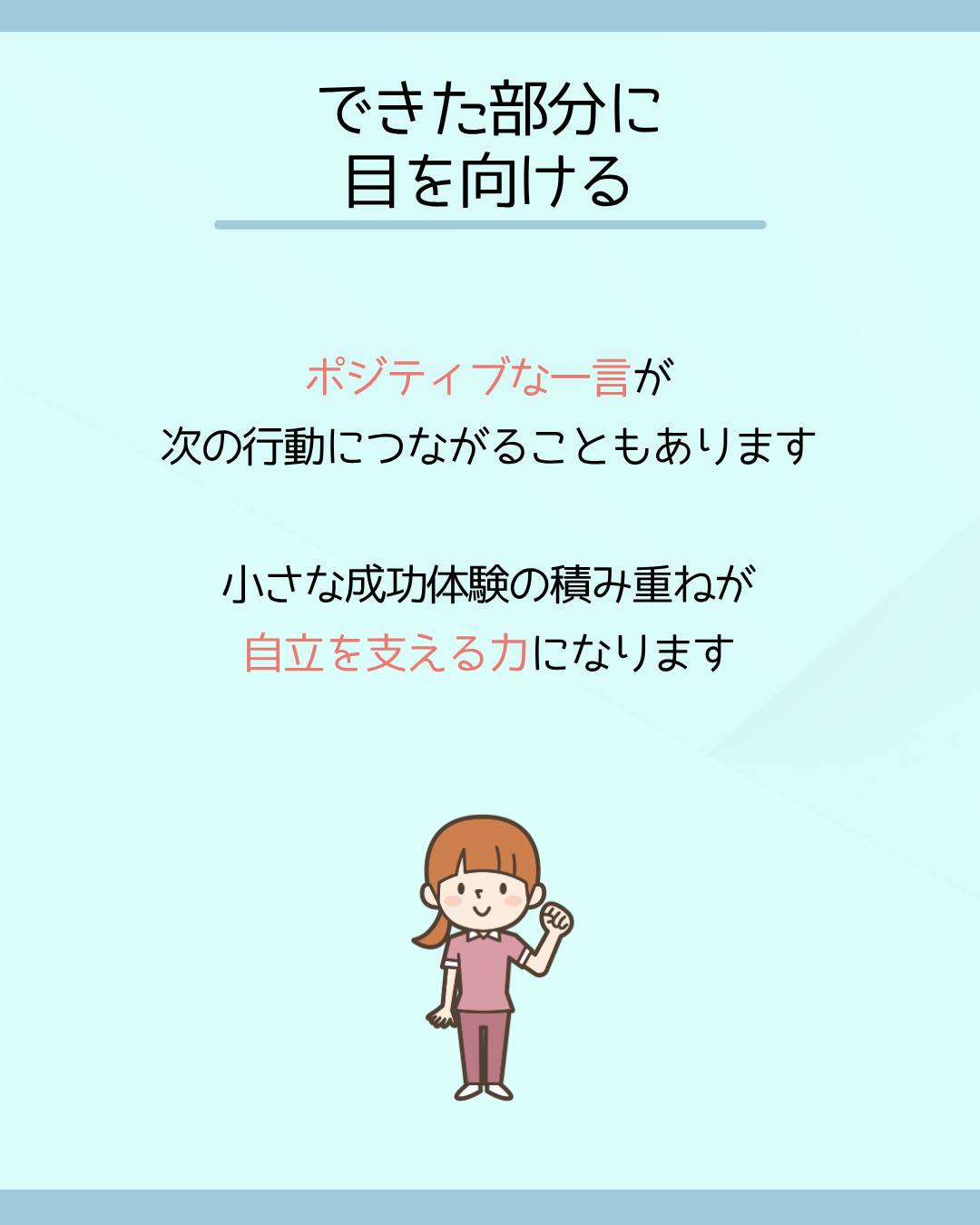 小さな成功体験の積み重ねが、自立を支える力になります。