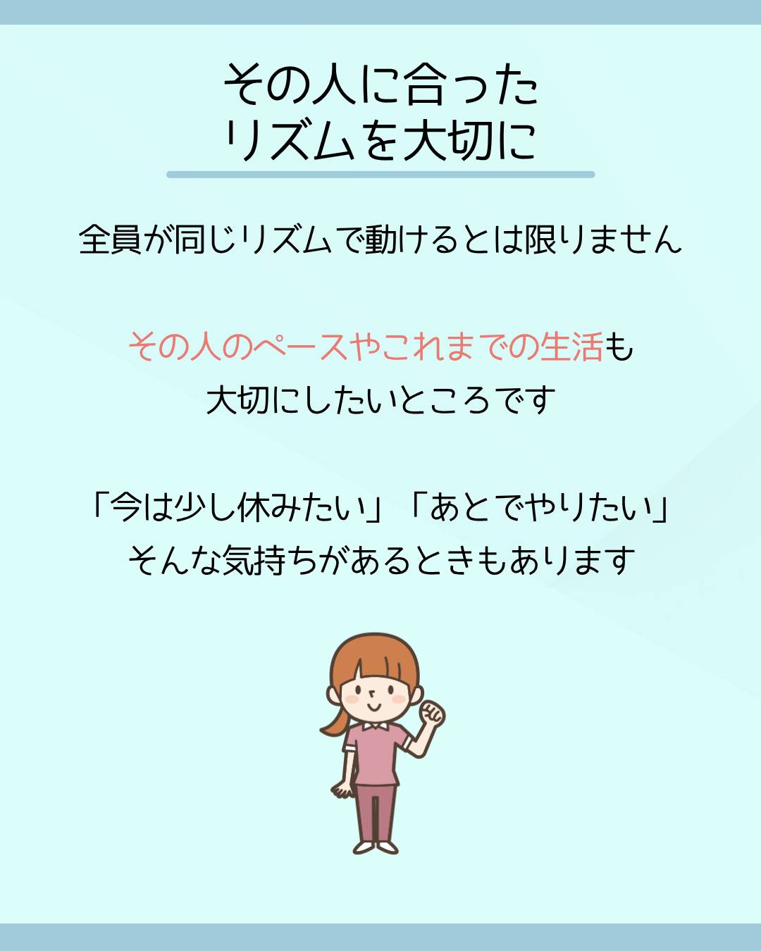 ▼その人に合ったリズムを大切に