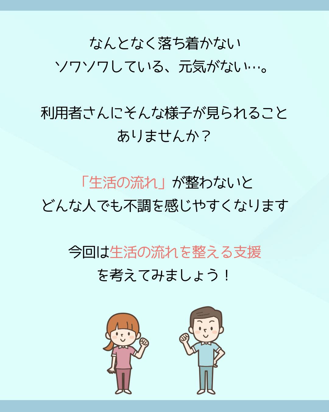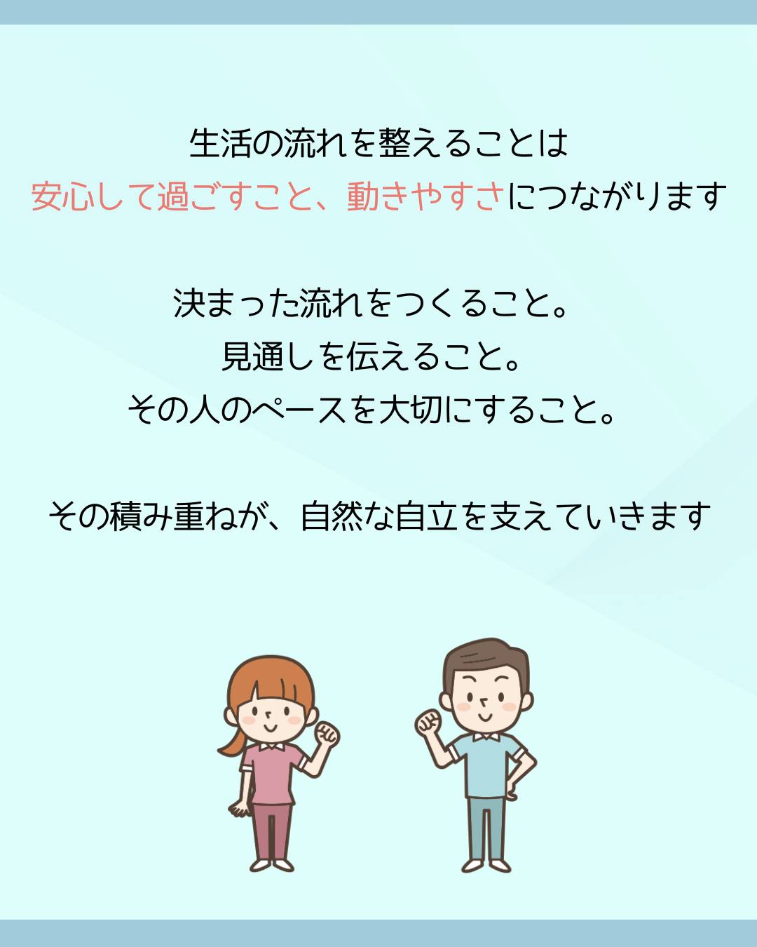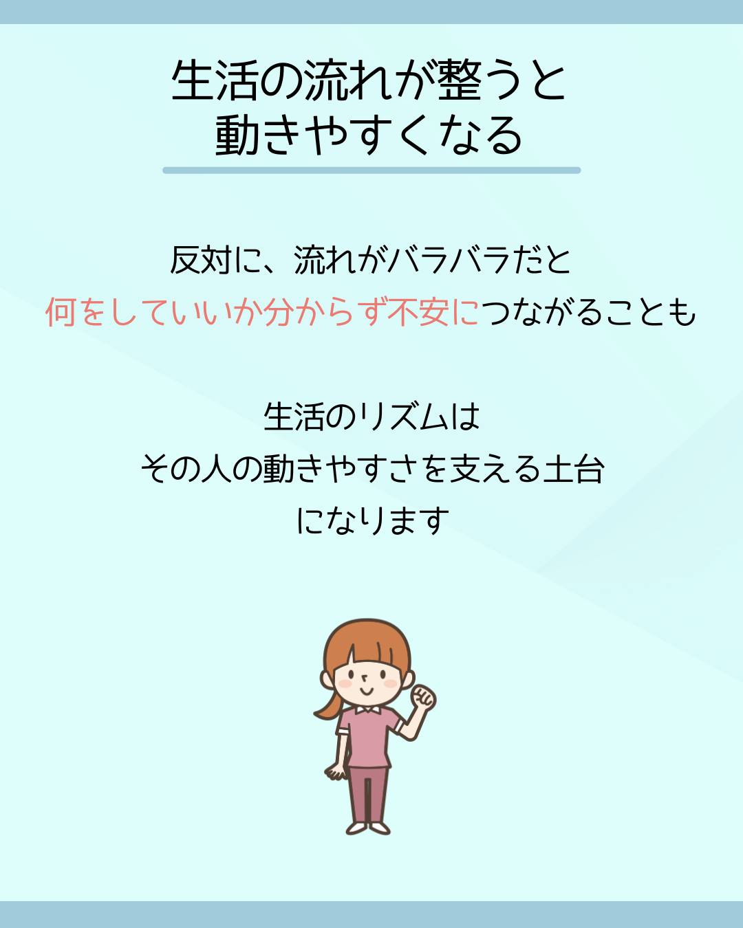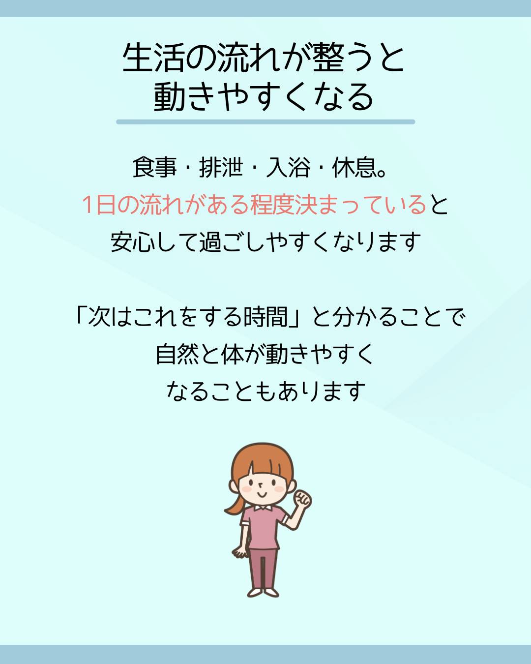 生活の流れを整えることは、安心して過ごすこと、動きやすさにつながります。